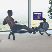 The rower RW 900 is equipped with 26 digital resistance levels SMR™ for a smooth and silent workout, automatically adjusted by your coach. The rower is also equipped with an air resistance to add intensity to your workout.